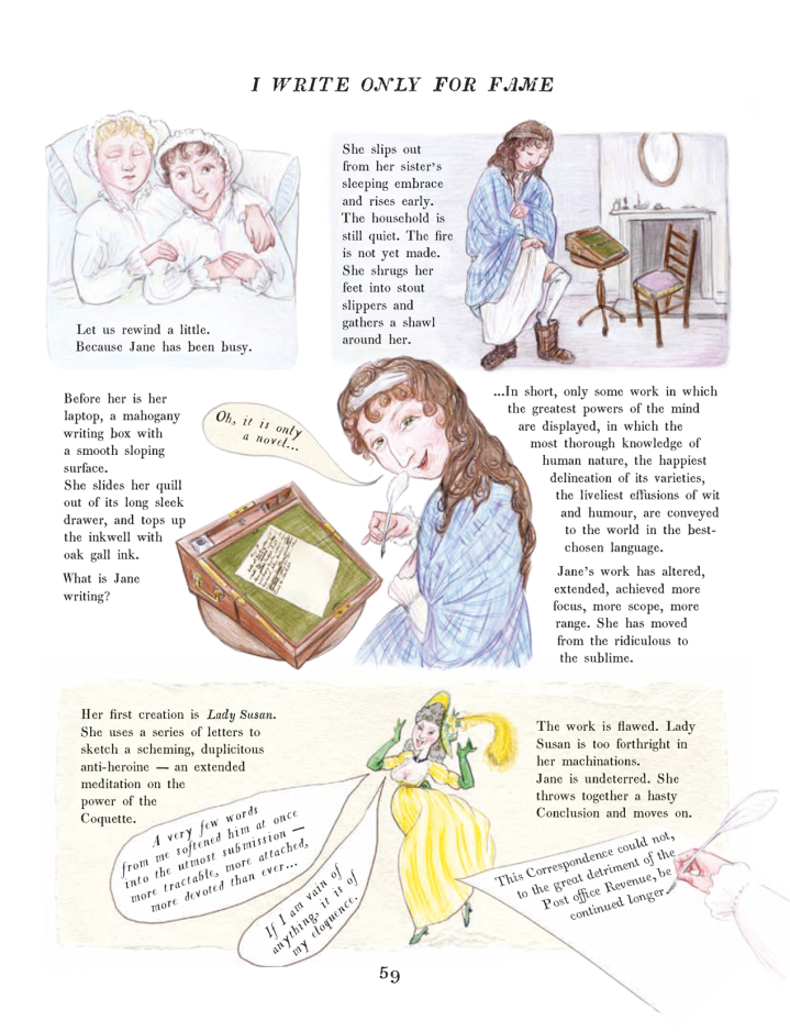 她的处女作是《苏珊夫人》。通过一系列书信,她勾勒出一个工于心计、表里不一的另类女主角形象——这是对风情女子力量的一次深入沉思。这部作品存在缺陷。苏珊夫人的权谋手段过于直白。简并未因此退缩,她草草拼凑了一个仓促的结局,便继续前行。