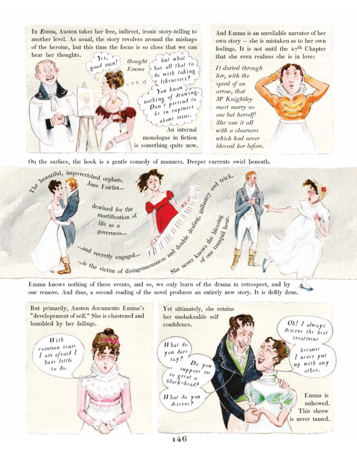 在《爱玛》中,奥斯丁将其自由、间接且充满讽刺的叙事手法推向新的高度。一如既往,故事围绕女主角的种种不幸展开,但此次视角如此贴近,我们几乎能听见她内心的声音。