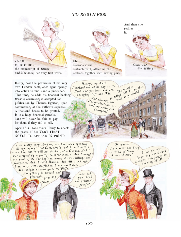 亨利,如今已是伦敦一家银行的老板,再次行动起来为简寻找出版商。这一次,他提供了资金支持。《理智与情感》由托马斯·埃杰顿接受出版,采用委托模式,费用由作者承担。计划印刷一千册。这是一场巨大的财务冒险。如果书籍滞销,简将无力承担这笔费用。1811年4月,简前往亨利处校对她即将问世的首部小说的印刷样稿!