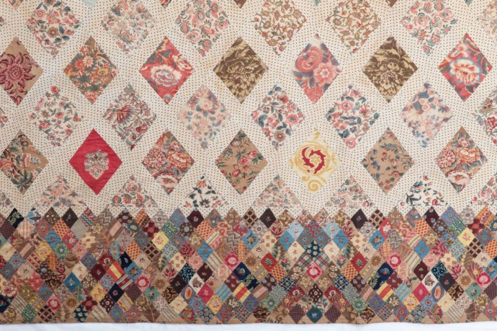 奥斯丁母女制拼布被,262厘米x232厘米,约1810年,奥斯丁故居博物馆藏。