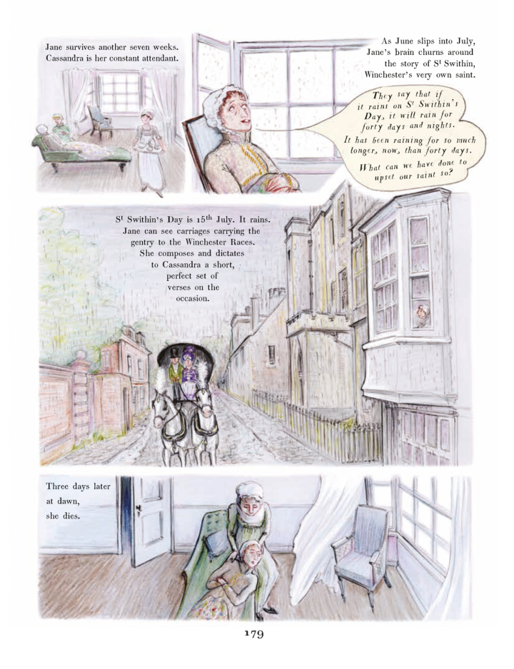 圣斯威辛节是7月15日。这天下了雨。简看到马车载着绅士们前往温彻斯特赛马会。她为此创作了一首简短而完美的诗,口述给卡桑德拉。
