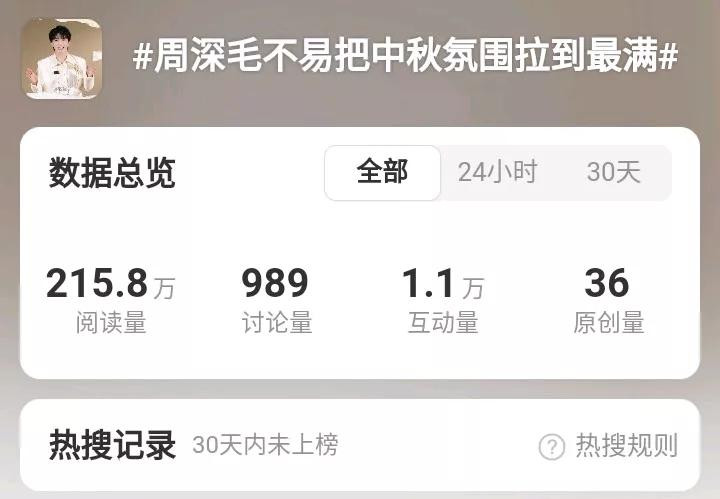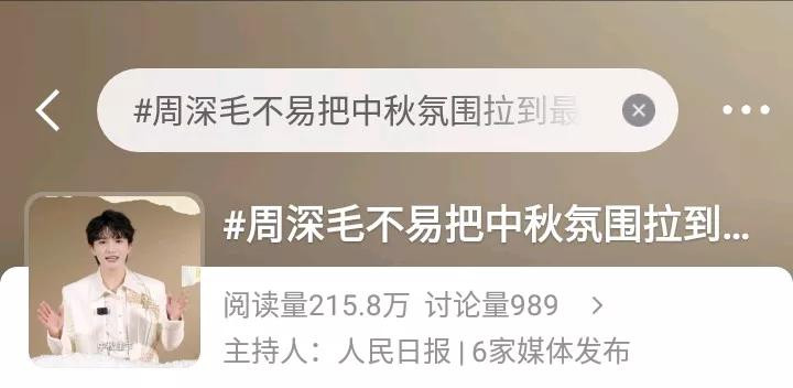 所以,网友们对毛不易和周深等歌手的关注度,达到了一个新高度!“周深毛不易把中秋氛围拉到最满”消息,冲上热搜。这一话题阅读量达到215.8万,互动量达到1.1万,讨论量989。网友们热议起来,带来了支持与点赞!央视中秋晚会就这样在众多歌手的支持下,进行了很好的宣传。中秋佳节,一年又一年,带来了观众思乡的心愿!